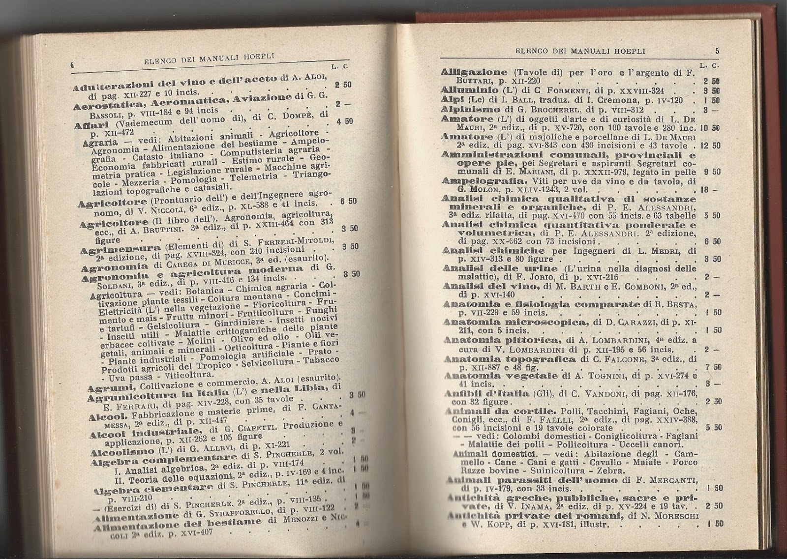 II) I manuali Hoepli sono sempre compilati da specialisti di ogni materia e sempre ove occorra illustrati copiosamente, e, ad ogni ristampa riveduti e arrichiti di nuove aggiunte per tenerli al corrente delle più recenti conquiste della scienza.